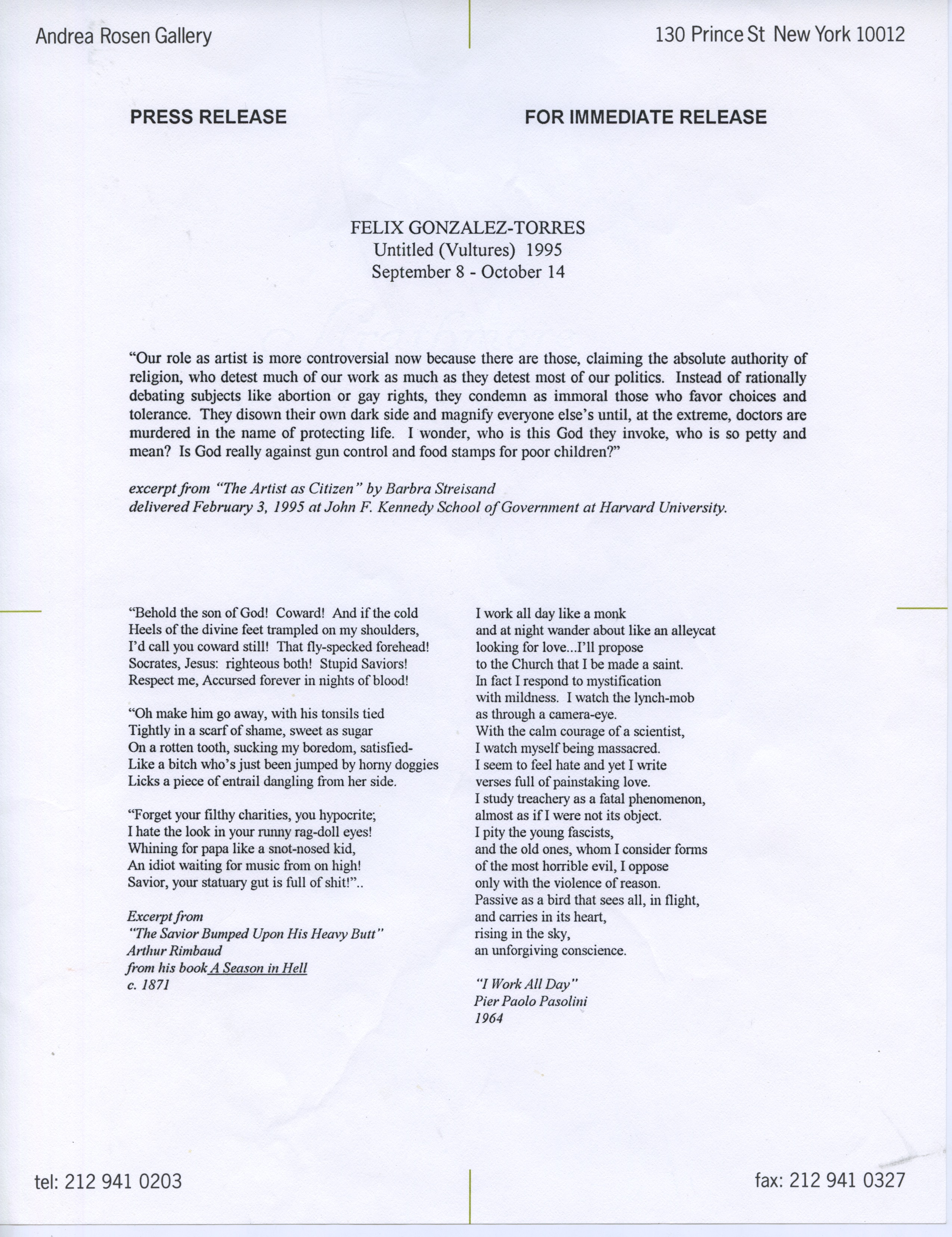 Excerpt from "The Artist as Citizen" by Barbra Streisand delivered February 3, 1995 at John F. Kennedy School of Government at Harvard University.