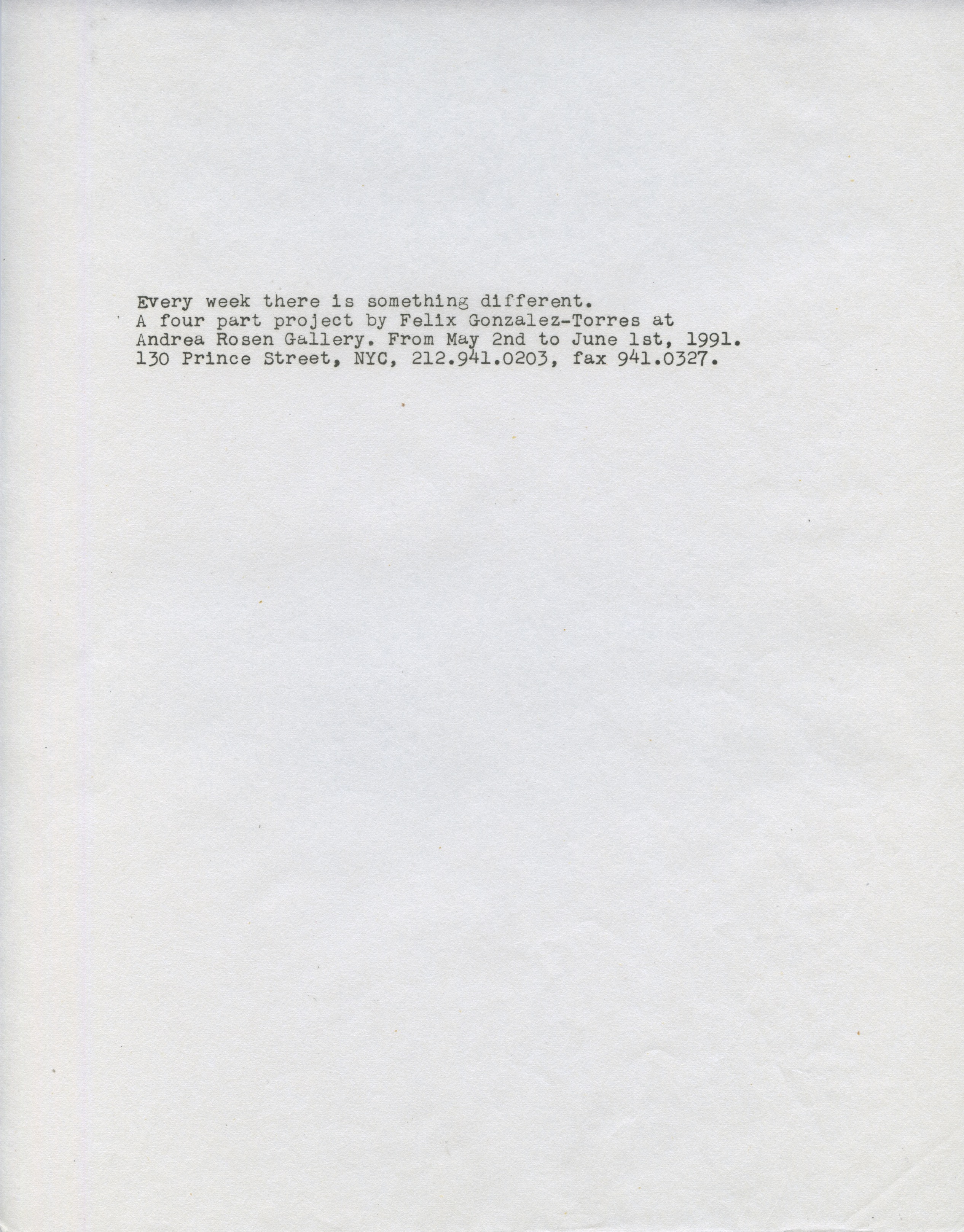 Andrea Rosen Gallery. From May 2nd to June 1st, 1991.